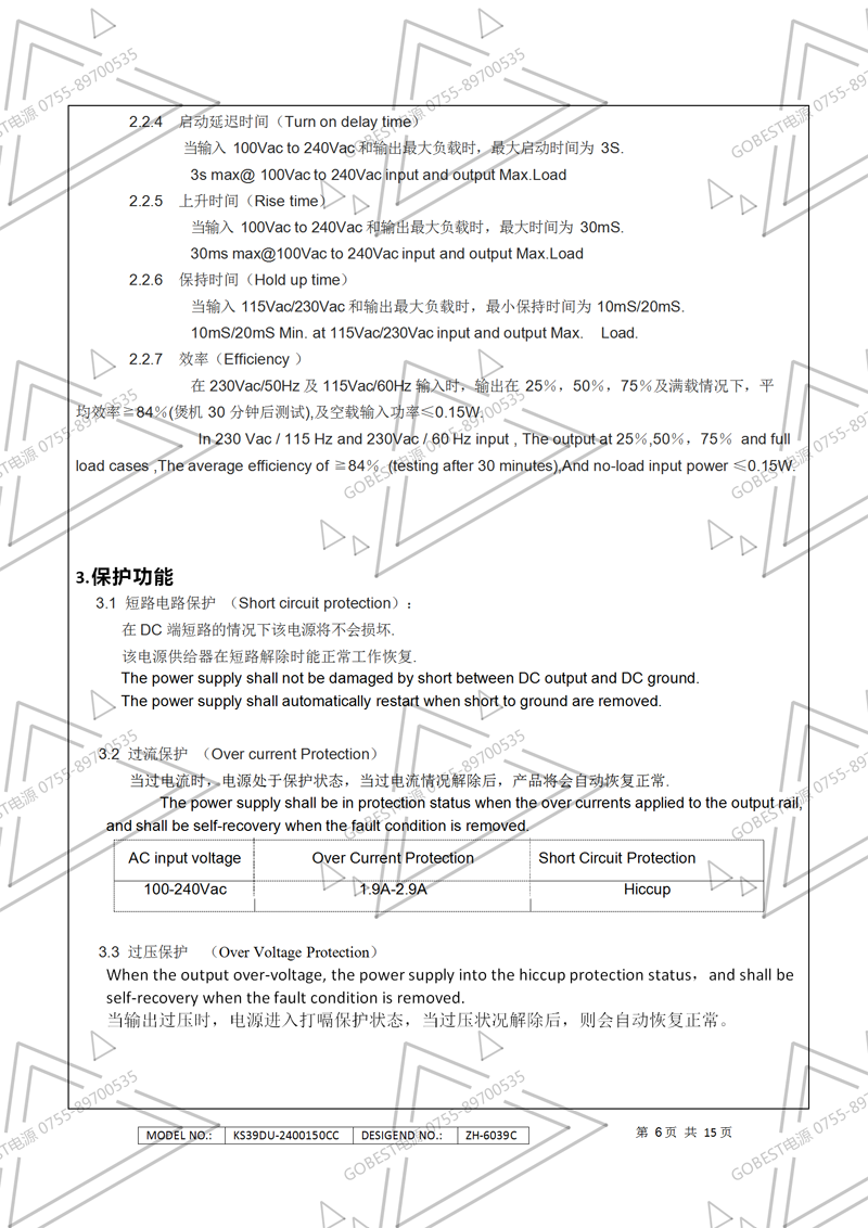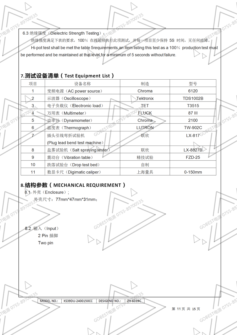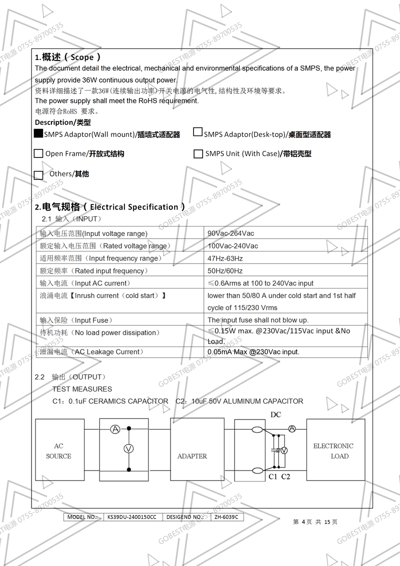 24V1.5A電源適配器規(guī)格書(shū)(國(guó)標(biāo)插墻式)
