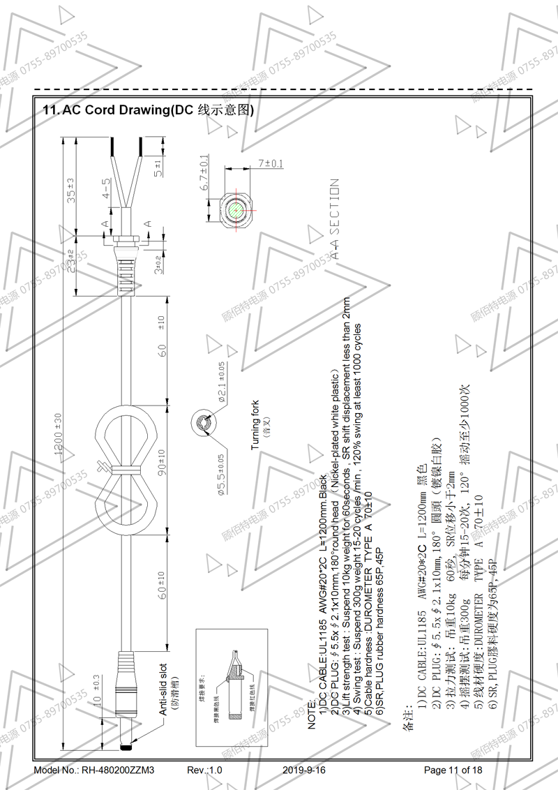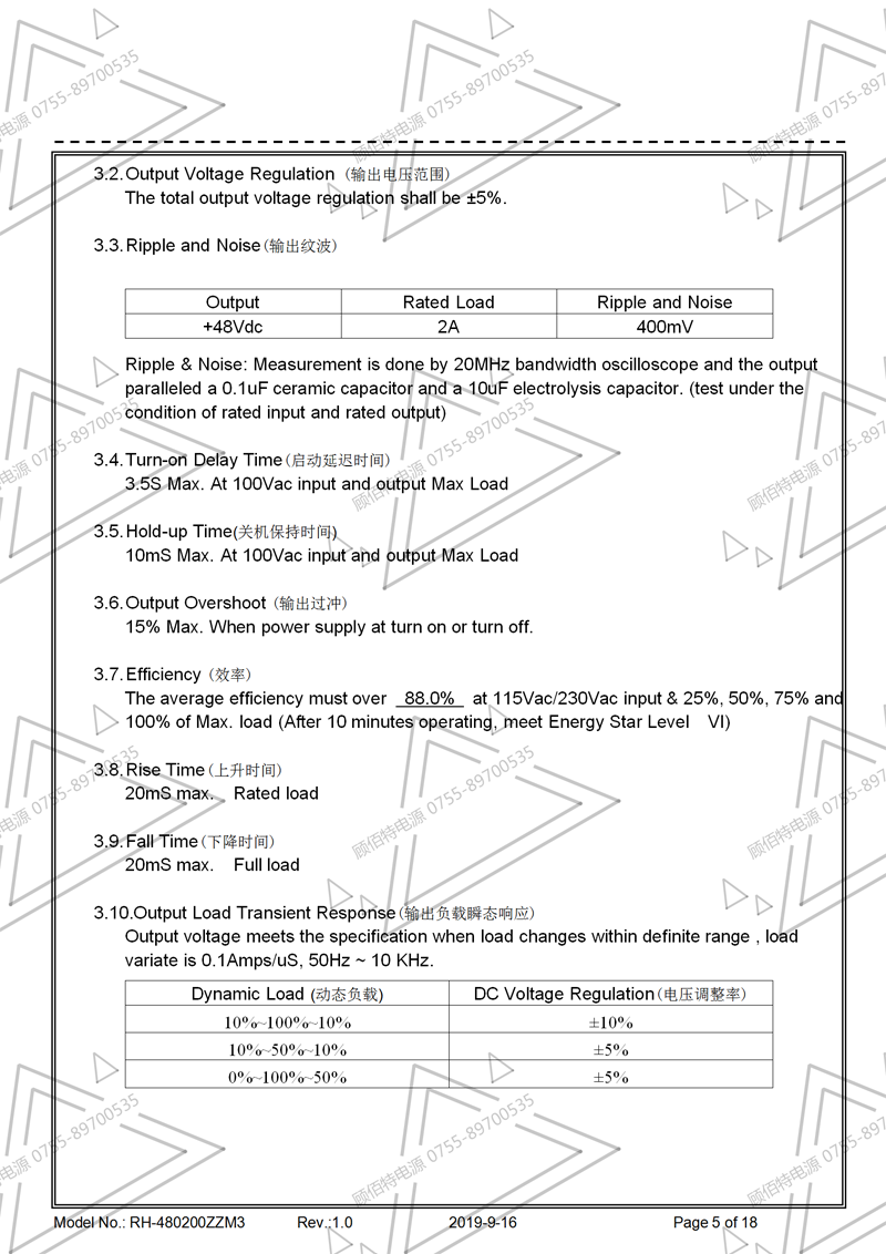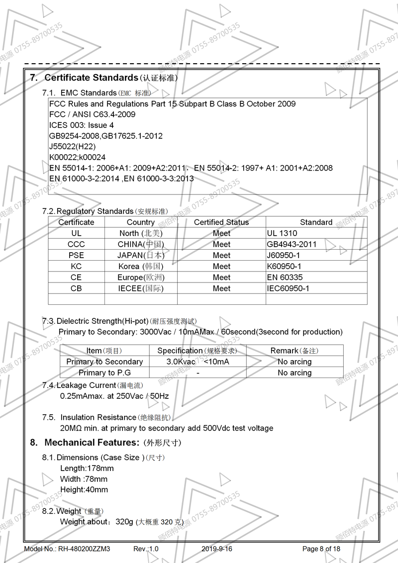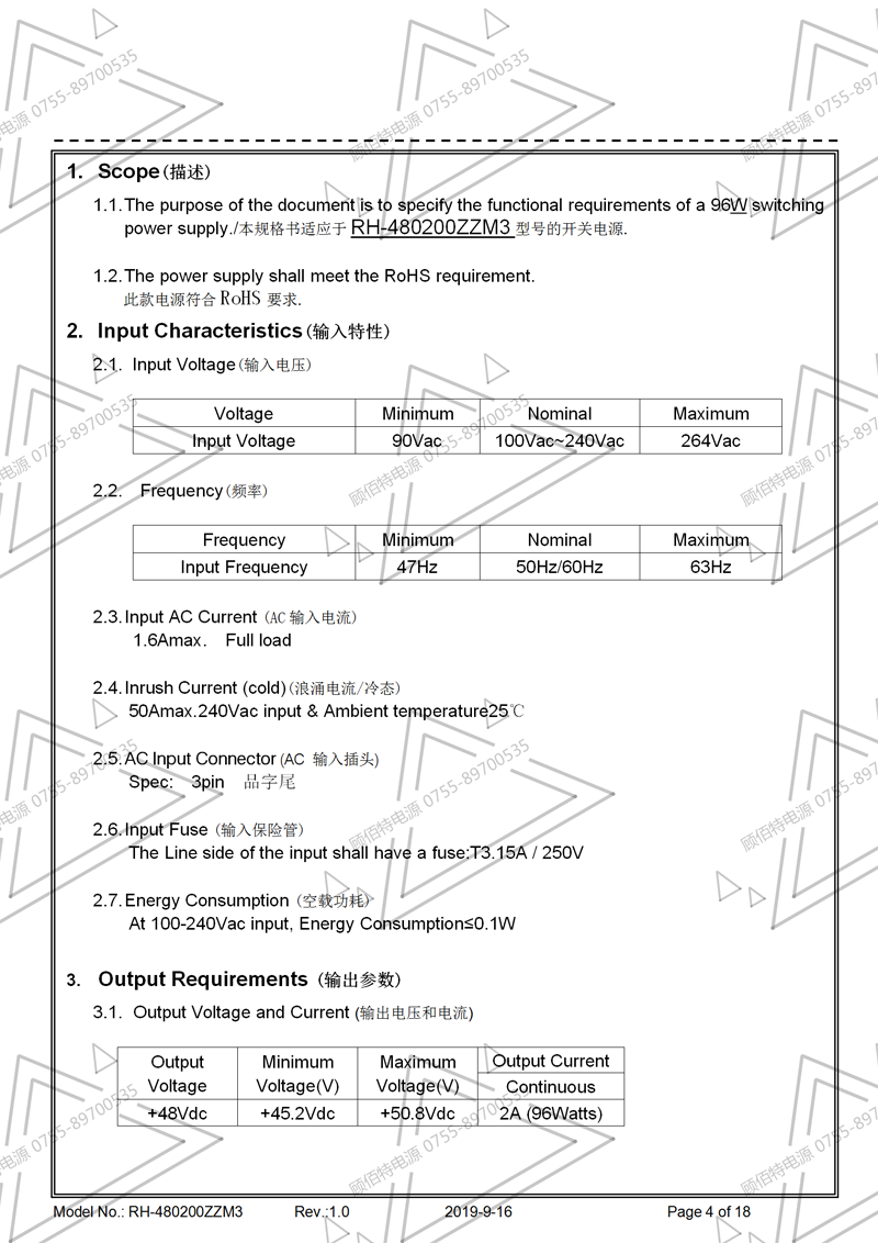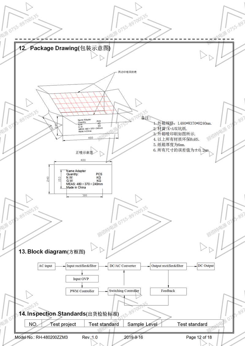 12V1.25A電源適配器規(guī)格書(桌面式)