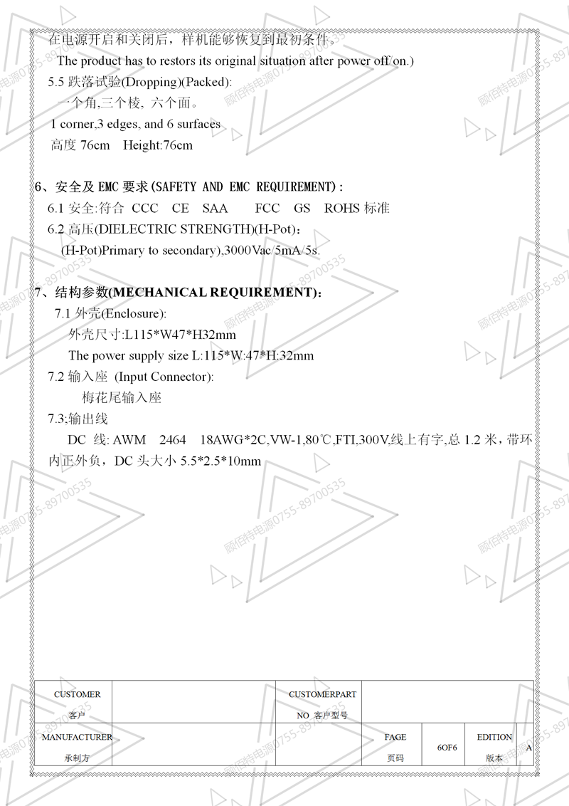 24V6A電源適配器帶PFC電路規(guī)格書(新模具)